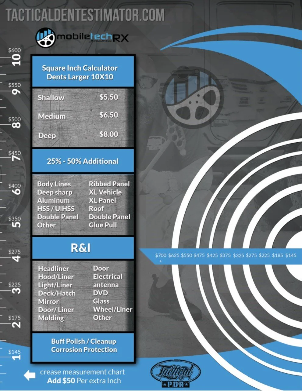 ex: a quarter size door ding will typically cost $100